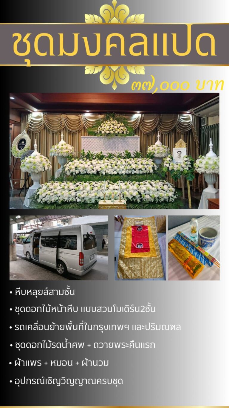 เรายินดีให้บริการจัดงานศพ ไทย-จีน-คริสต์ ครบวงจร จำหน่ายหีบศพทุกรูปแบบ จัดดอกไม้ พร้อมให้คำปรึกษาธรรมเนียม ประเพณีไทย-จีน ถูกต้องตามหลักประเพณีทุกขั้นตอน โดยผู้ชำนาญงาน มีประสบการณ์มากกว่า 20 ปี ให้คำปรึกษาฟรีได้ตลอด 24 ชม.